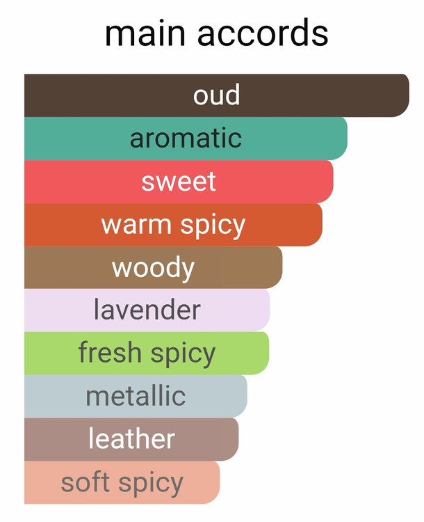 طراوت خیرهکننده نتهای گیاهی در لایه آغازین سریعا به احساس گرم و لطیفی از جنس چرم در کنار سمفونی چوبهای گرانبها میرسد. لطافت و شیرینی این آمیزه که با نت زعفران همراه شده است و آکورد پرالین نهفته در آن، چرخش فوقالعاده امروزی و مدرنی را با تمرکز بر نت افسانهای عود خلق میکند.